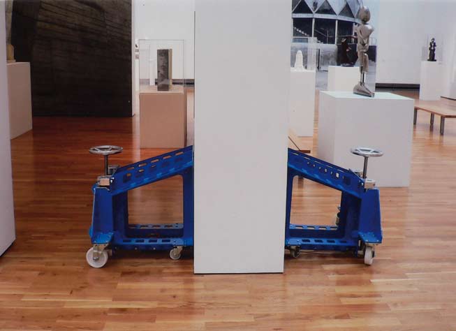 In order to reduce the costs of architectural alterations for temporary exhibitions many times over, we have developed devices for moving our movable wall systems.
